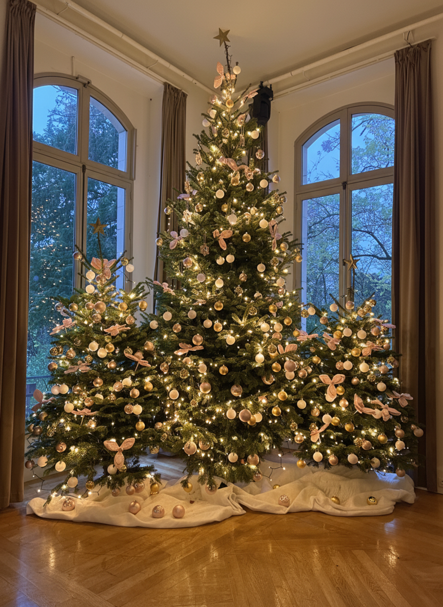 - Décoration de salle avec 3 sapins naturel dont 1 de 4,50M et 30 spots portables afin de créer une ambiance lumineuse personnalisé